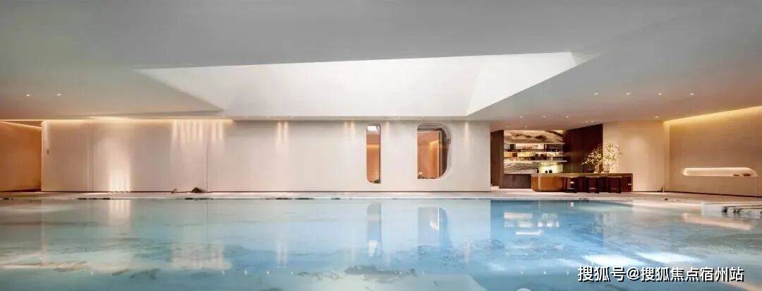 游泳池以罗马会场泳池为灵感,汲取《观瀑图》的山水意境,将古典与现代完美融合。池畔以大理石铺就,线条优雅如古罗马建筑的恢弘气势,而池中水波粼粼,光影交错间,水幕如瀑,营造出“人在画中游”的诗意境界。