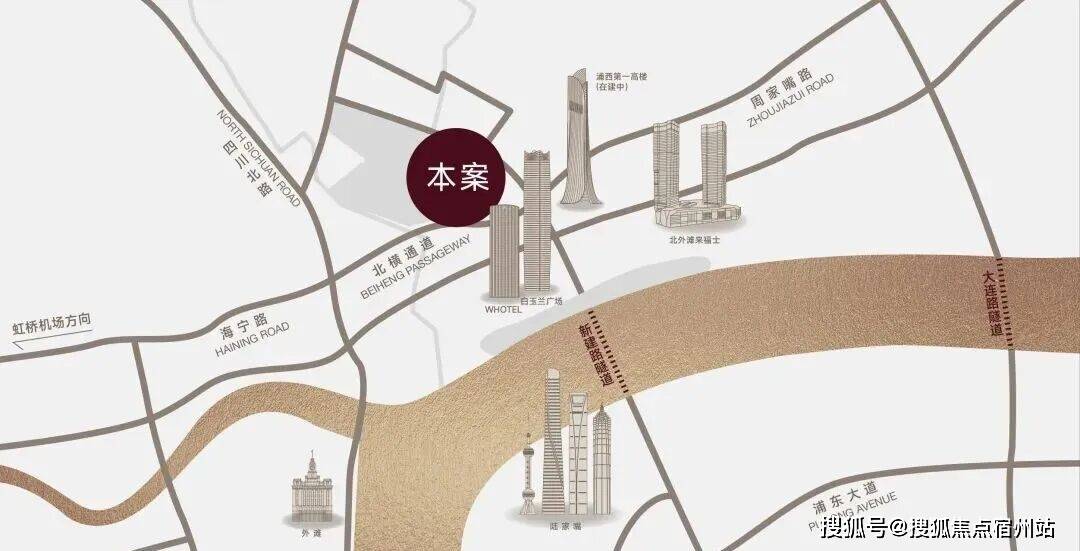 约150米北横通道(直线距离)贯通全城,快速通达虹桥机场/虹桥火车站;约2.4公里大连路隧道(直线距离),直达浦东东方路、世纪大道、八百伴商业圈。