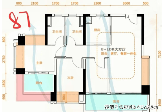 :堪称项目“明星户型”,使用率高达107%,核心亮点是约40㎡的超大方厅,客厅开间达4.6米,搭配全景阳台,空间感媲美传统130㎡以上产品,非常适合注重公共区域体验的家庭。