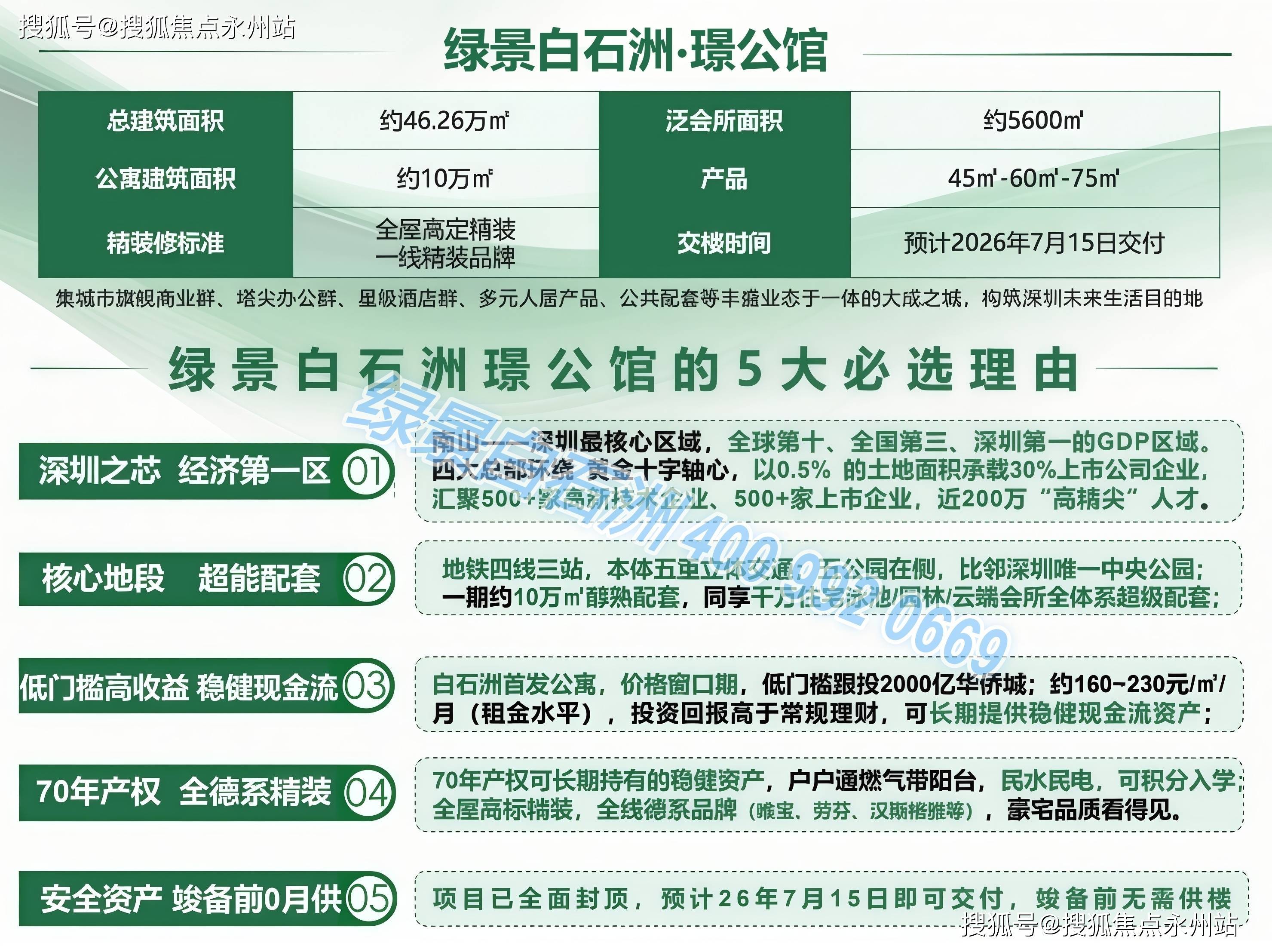2026【南山】绿景白石洲·璟公馆官方最新价格、在售户型介绍,配套及交付信息详情解析!