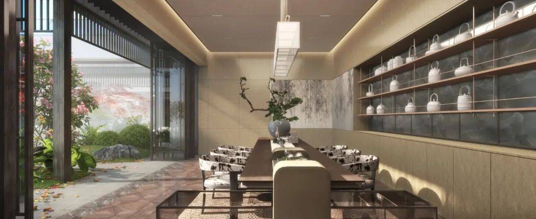 整个社区以极低的1.05容积率规划,灵感来源于古画《桃源图卷》,旨在打造一个现代版的“人间桃源”。设计上非常注重私密与静谧,通过多层退让系统隔绝喧嚣,私家入户的方式也让归家之路格外宁静。社区里规划了多元的景观和社交空间,移步换景,可以散步赏景,也可以邀好友品茶聊天,生活意趣盎然。