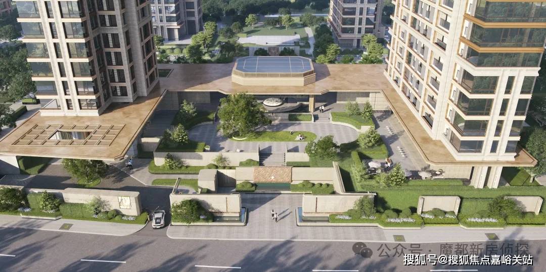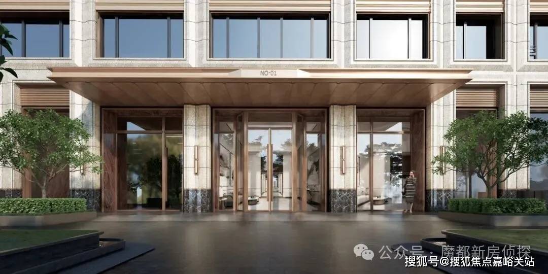 项目还有一个超大亮点,就是东侧的主大门。不同于普通项目的门头设计,项目四进式的设计,从「玖系」非常经典的