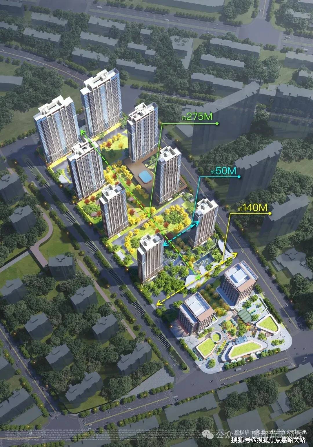 社区规划:建筑类型(洋房 / 高层 / 小高层)、楼间距、中央景观、全龄活动空间、会所 / 泳池 / 健身房等配套
