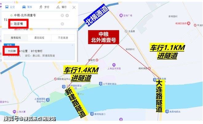 自驾上,项目往北约300米就是北横通道,往南车行约1公里,就是新建路隧道和大连路隧道直达浦东。从项目到陆家嘴、北外滩和外滩都在10分钟左右。