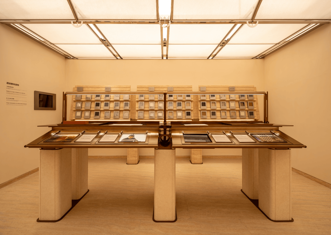 皇家白奢石、Prada绿皮革面奢石、砖纹定制铝板...细节中透露出精致与考究.工艺工法间对72种奢材的展示,让人心悦诚服.