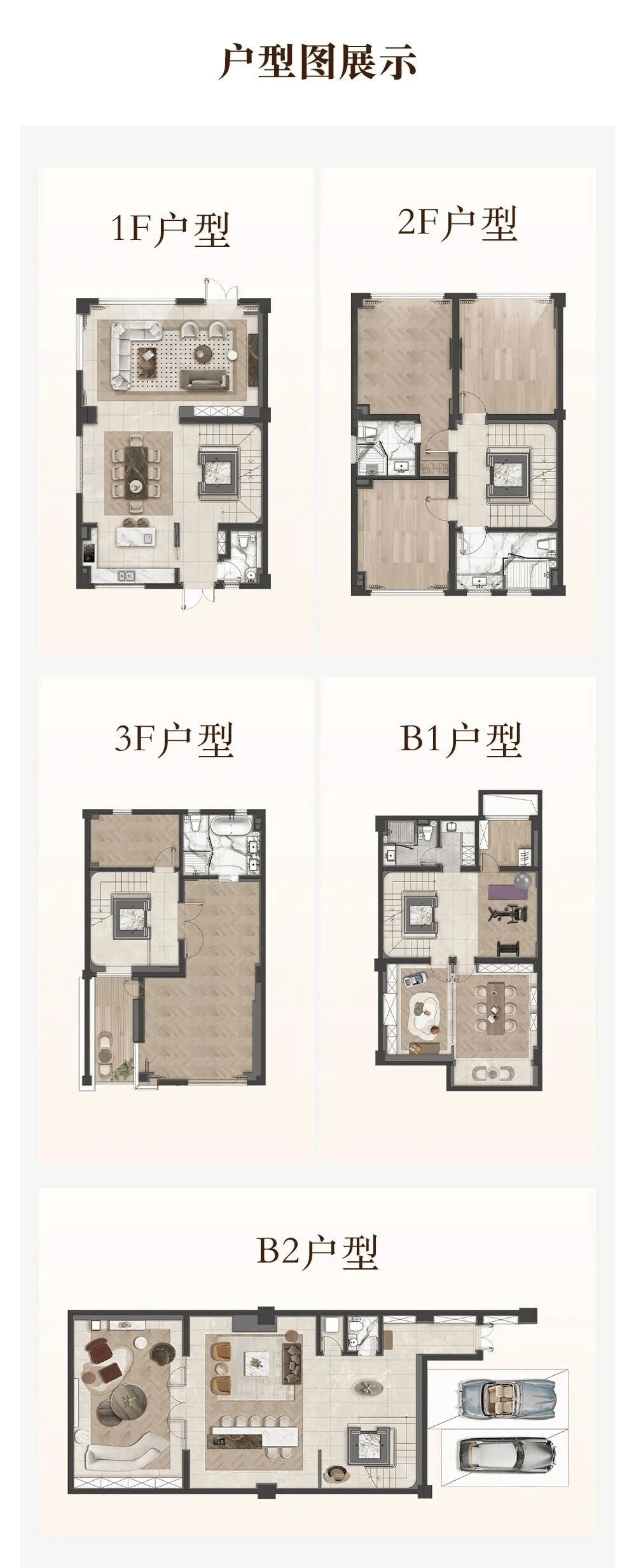 走进龙湖天钜,首先感受到的是它超越传统别墅的空间尺度。项目采用地上3层、地下2层的布局,