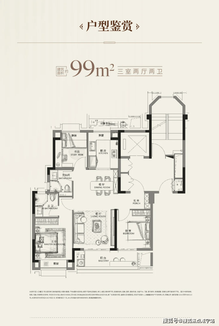 建面约99平米3-2-2飞机三开间朝南户型,动静分区,南北通透,南向面宽约9.5m,采光和通风条件十分优越!