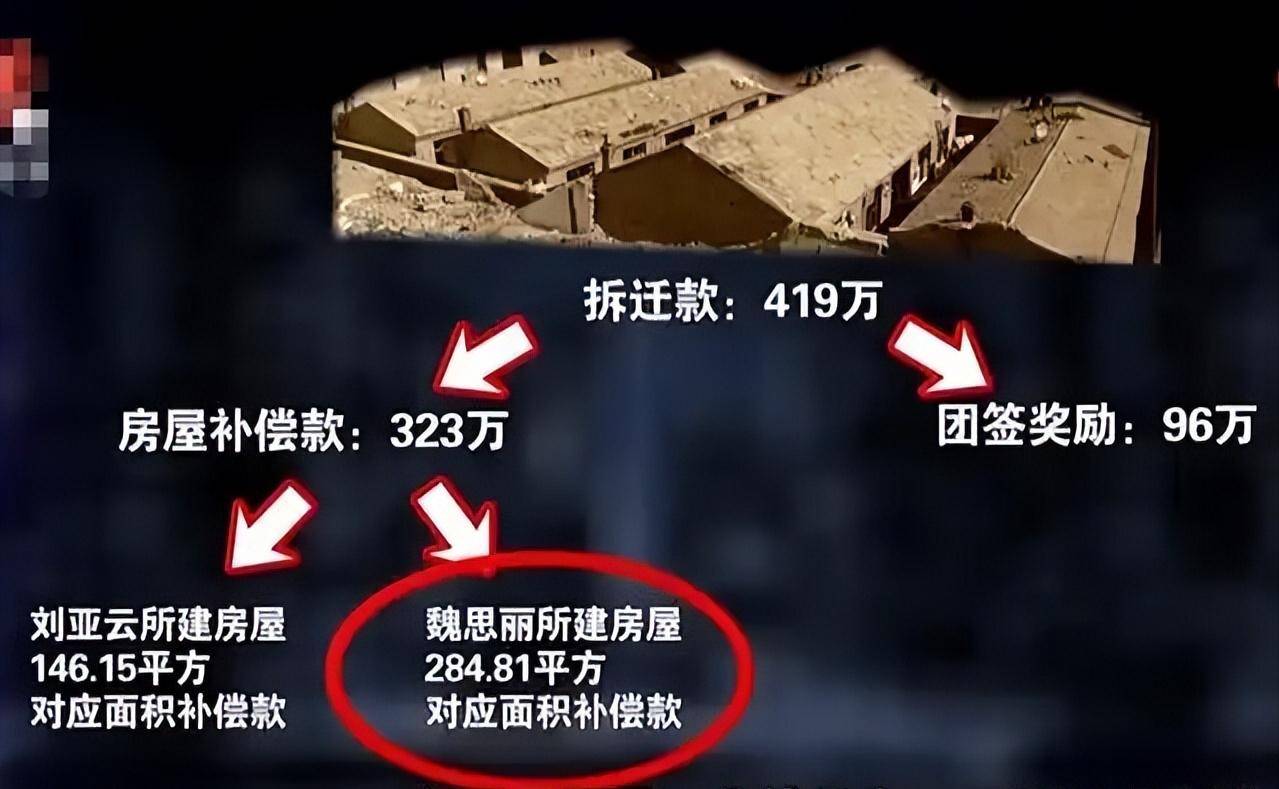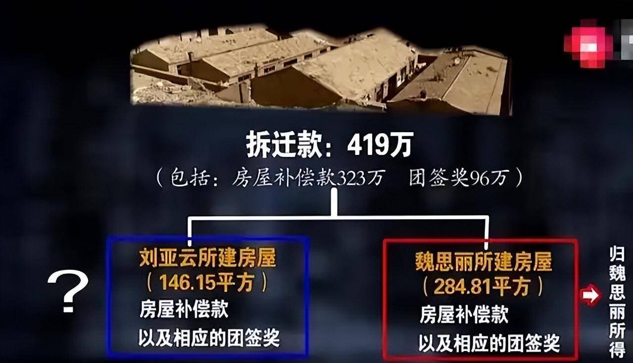 而房屋补偿款中,又分为刘亚云本身房屋面积146平方米的钱,以及魏思丽后来扩建房屋284平方米的钱。
